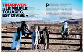 Pour enregistrer leur nouvel album, ils ont traversé un océan et un continent. Bien loin de leur désert natal et de la guerre qui sévit, ils ont rejoint un ami américain, dans la sérénité du parc naturel de Joshua Tree, en plein désert de Californie. Tinariwen a reçu en 2012 un Grammy Award dans la catégorie du Meilleur Album de musique du monde pour Tassili (2011). Son nouvel opus, qui sort en février (lire Mix Culture, page 102), est intitulé Emmaar, mot qui signifie à la fois « vent chaud », « chaleur avant la brûlure » et « tension avant la révolte ». Les chansons sont à la fois poétiques et politiques, comme Toumast Tincha :« L’idéal du peuple est bradé, mes amis Une paix imposée par la force est vouée à l’échec Et cède la place à la haine Oh peuple, où est passée cette assurance faite de dignité et de noblesse d’âme ? »